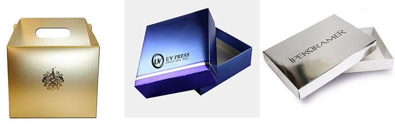 – In hộp giấy bằng chất liệu giấy Bristol, Duplex có ghép màng metallized hoặc sử dụng trực tiếp giấy metallized